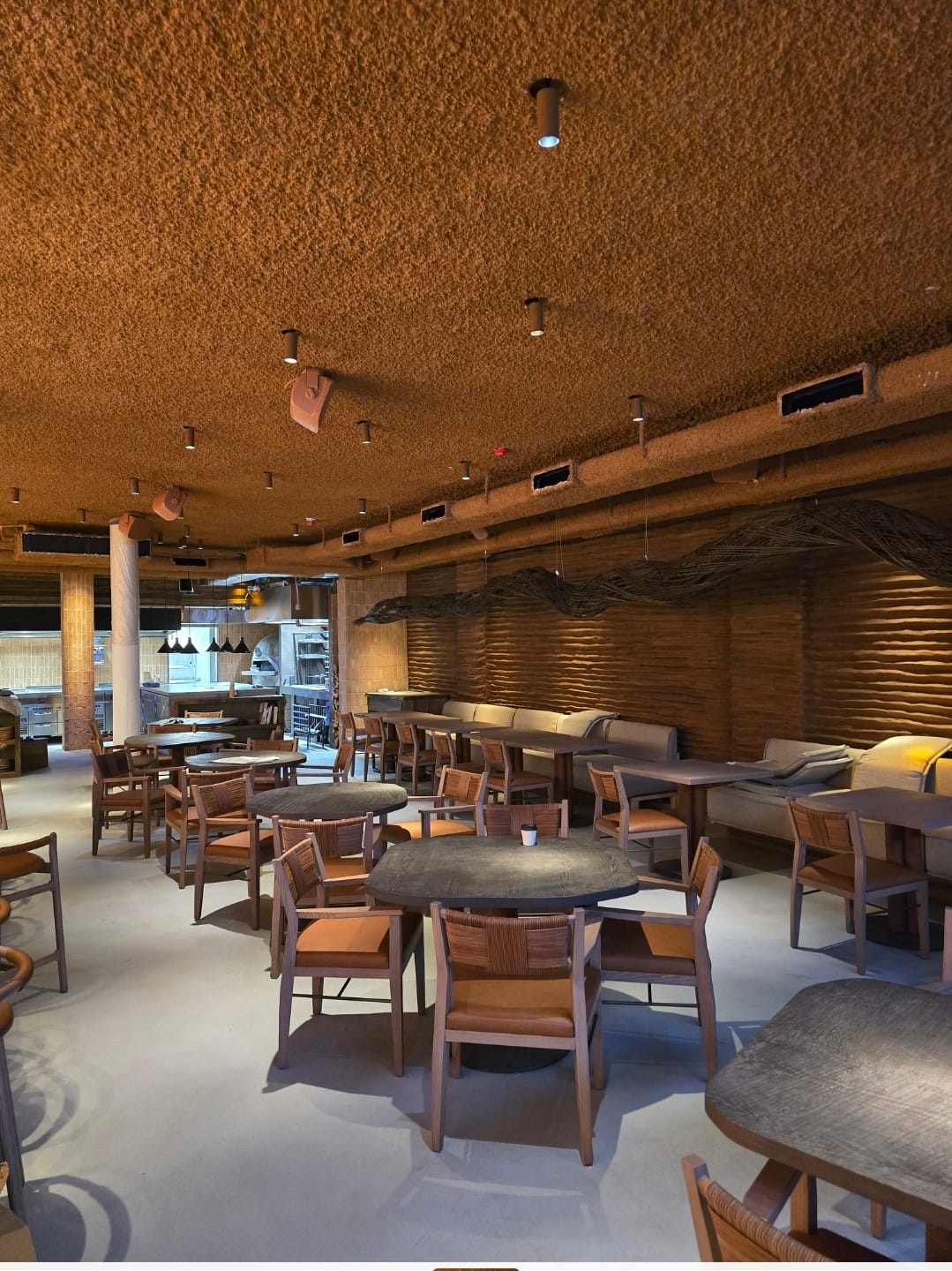 Designed for rapid, efficient application even on curved or complex surfaces, our acoustic plaster not only enhances sound quality by reducing reverberation and ambient noise, but also elevates the visual appeal of your space with a range of customizable color options. Fire-resistant and compliant with international sustainability standards, Bowiq Acoustic Plaster supports healthier indoor environments while contributing to an overall modern and inviting atmosphere. Explore our project gallery to see how we’ve successfully transformed restaurant acoustics worldwide, and discover why Bowiq is the trusted partner for creating acoustically optimized dining experiences